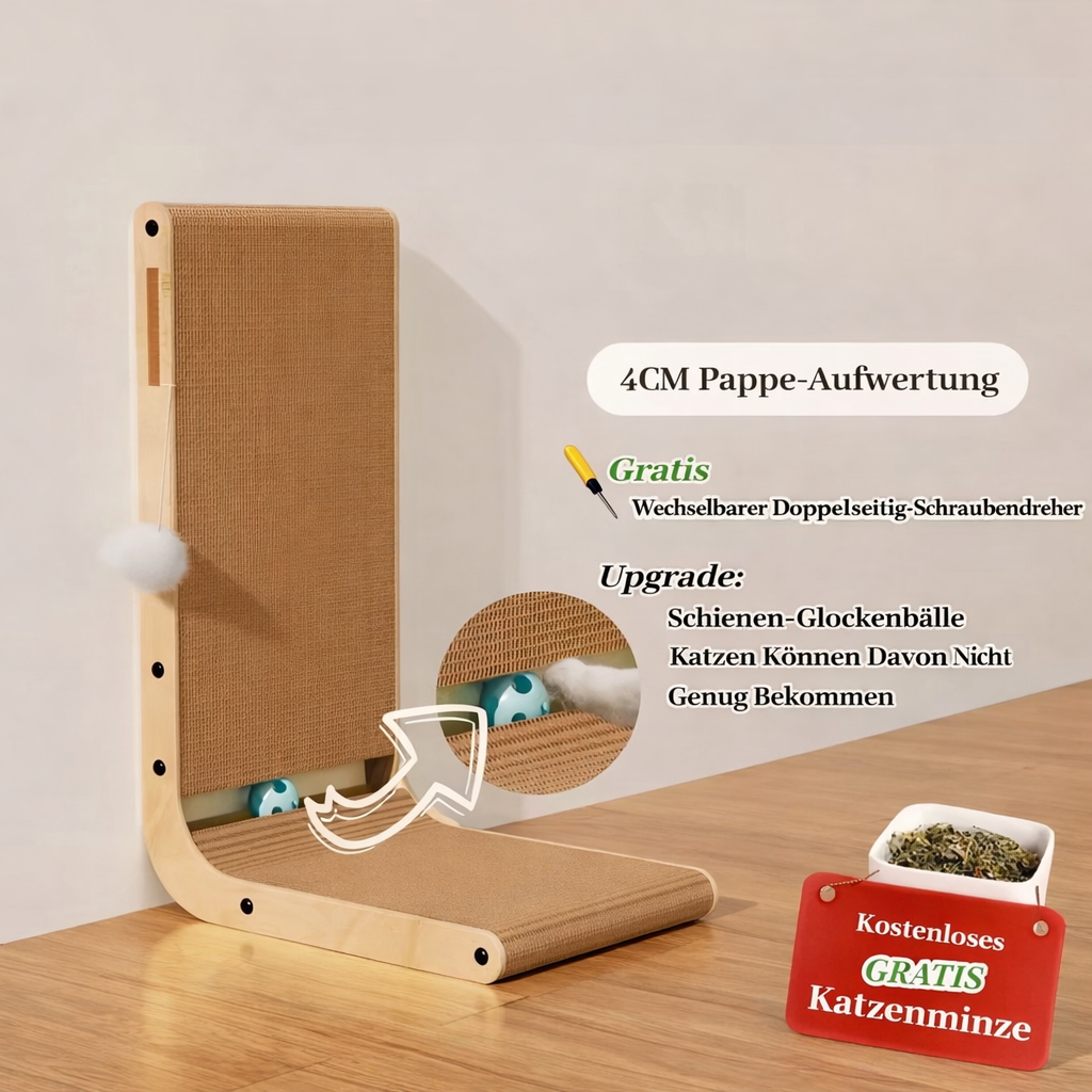 Dieses innovative Kratzbrett im L-Design mit integrierter Spielkugel wurde genau dafür entwickelt.